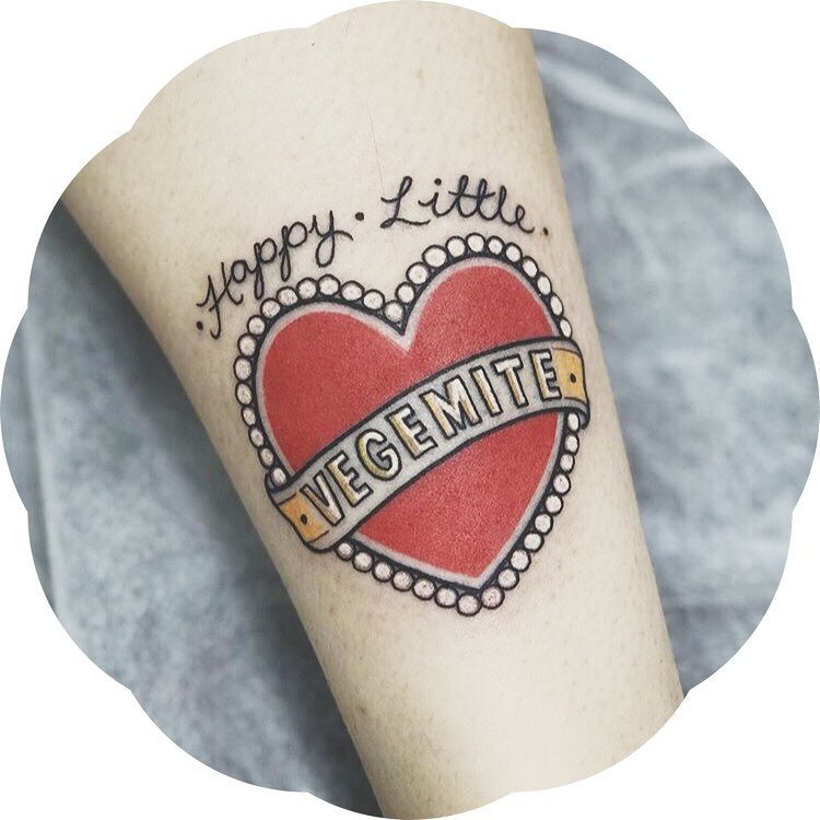 Vegemite is said to put a rose in every cheek – that’s probably only possible if you get your tattoo on your face, on even your bum cheek, but let’s save your tattoo artist the horror of dealing with that.
