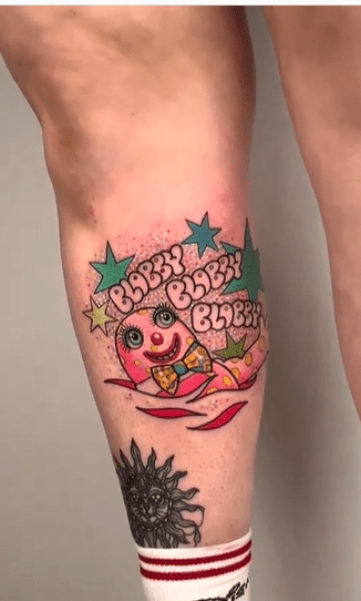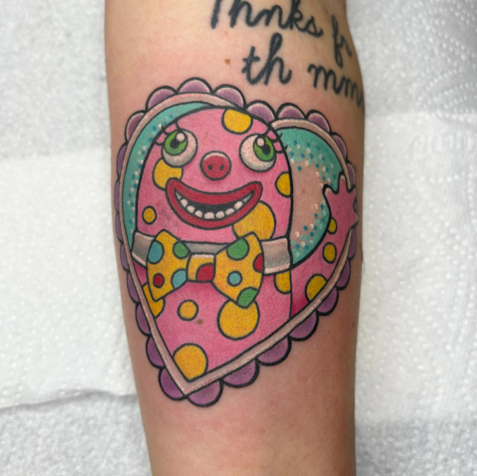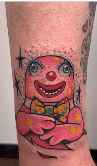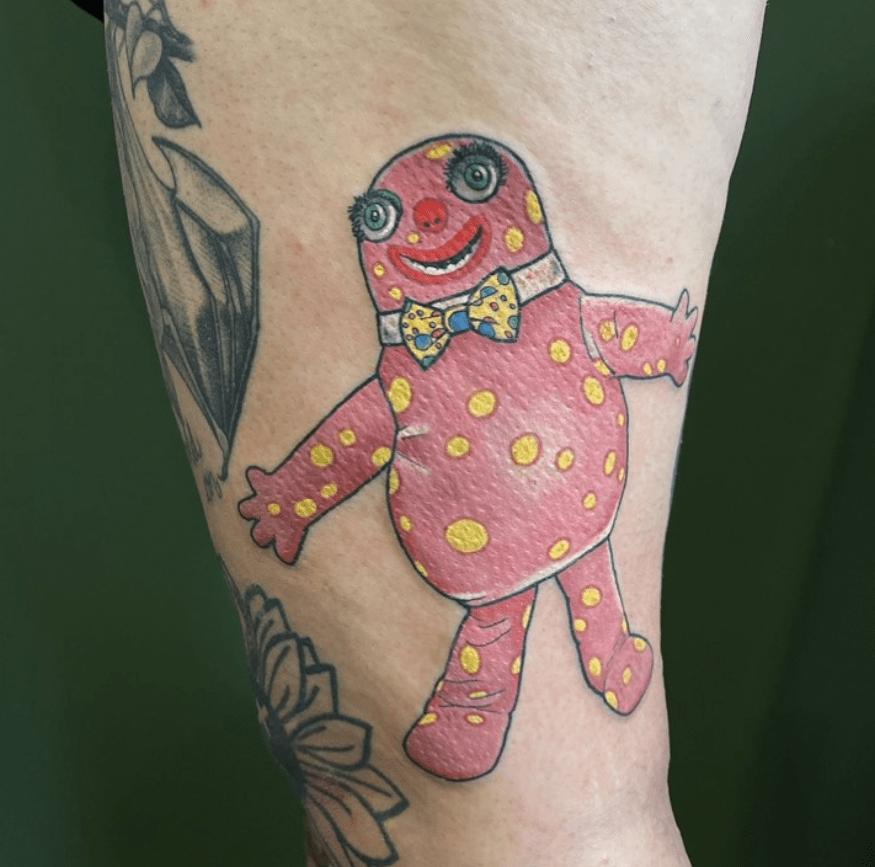 These tattoos are nightmarish in the good way – while being solid pieces by these tattooers, it’s the subject matter which may have an affect on people. Mr Blobby is either beloved or the stuff of nightmares.