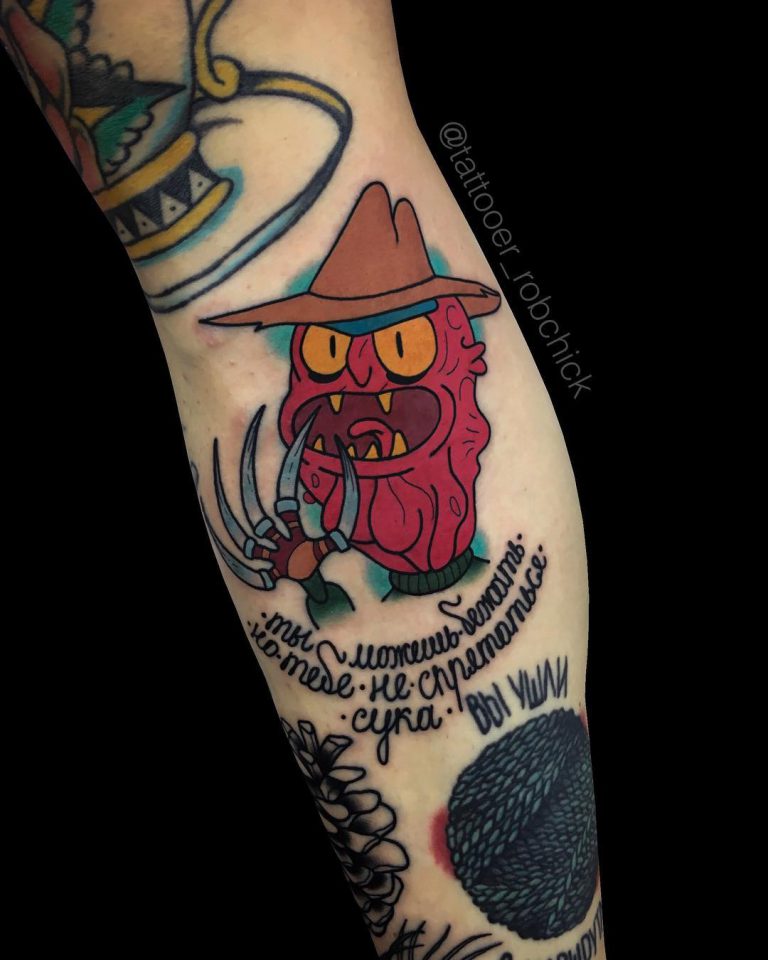 If you’re after something special, give your tattoo artist creative freedom and allow them to produce a unique Scary Terry tattoo for you. Another idea is getting getting a mashup tattoo the represent your love of both A Nightmare on Elm Street and Rick and Morty.