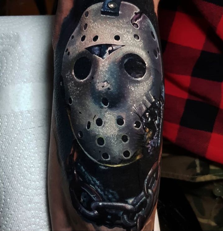 Colour realism Jason Voorhees tattoo by @lu_skywalker