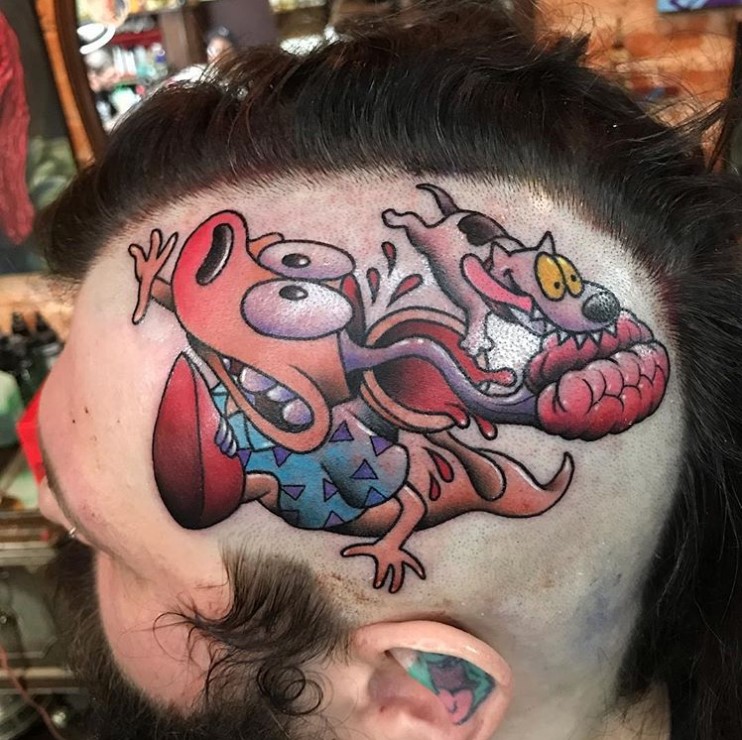 Spooky Rocko’s Modern Life head tattoo by @tomtaylortattoo