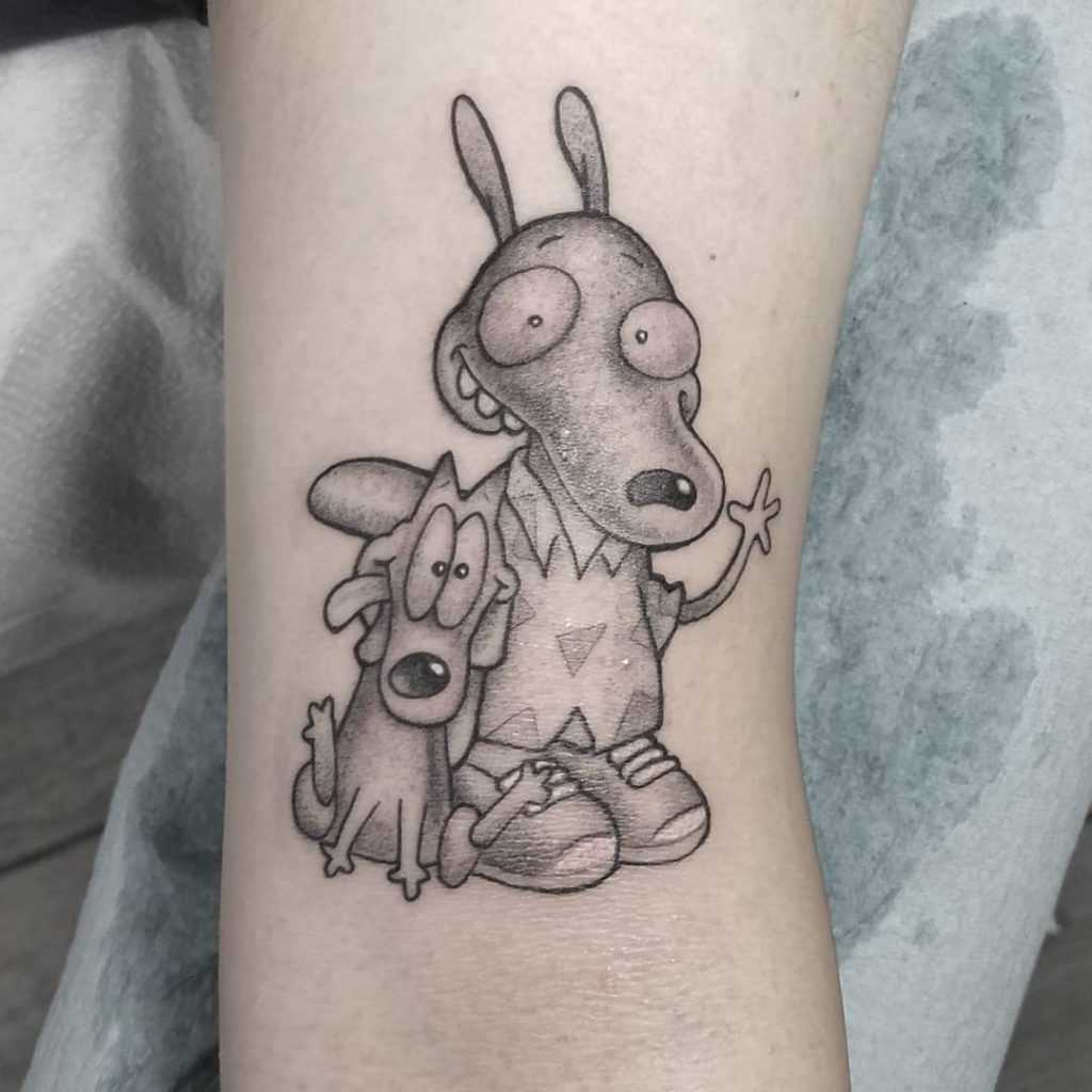 Stippled Rocko and Spunky tattoo by @lordnugs