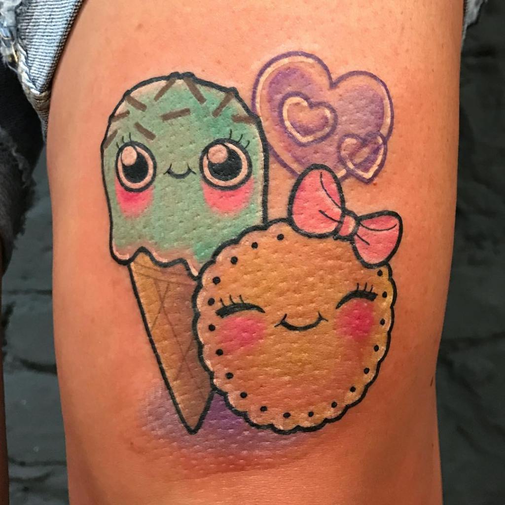 Kawaii ice cream and cookie tattoo by @tattoosbymeri