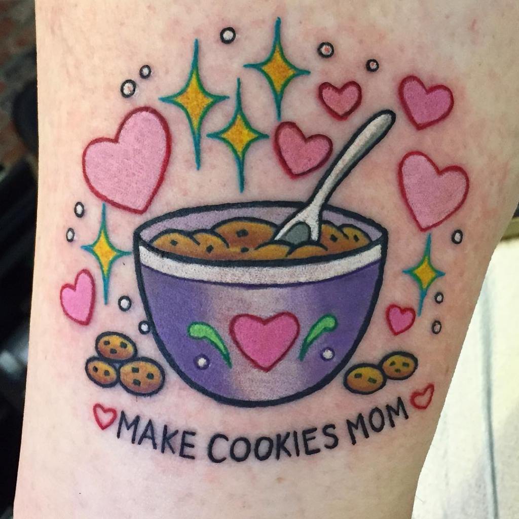 Cookie and various baked sweet treats tattoo by @michellemaddison