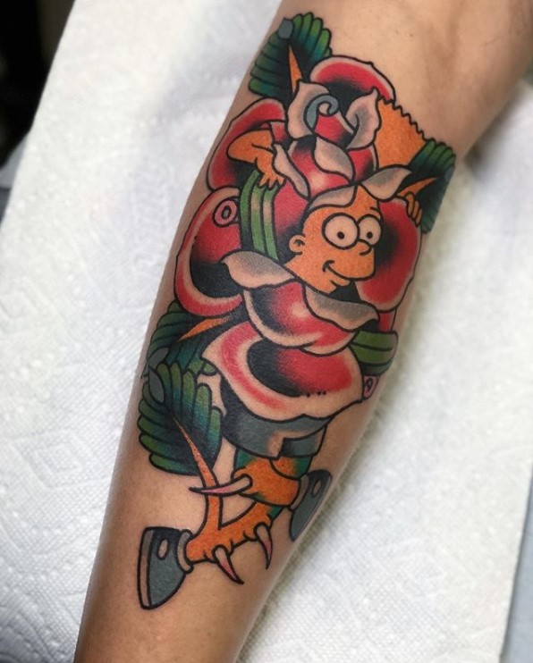 Abstract traditional style Bart Simpson rose tattoo by @adam_bomb_