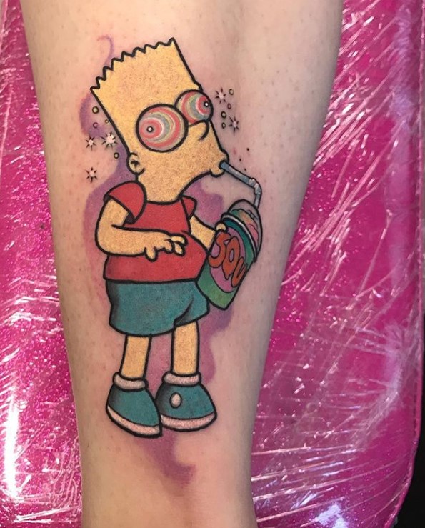 Blazed Bart Simpson skateboarding. Tattoo by @henri.howard