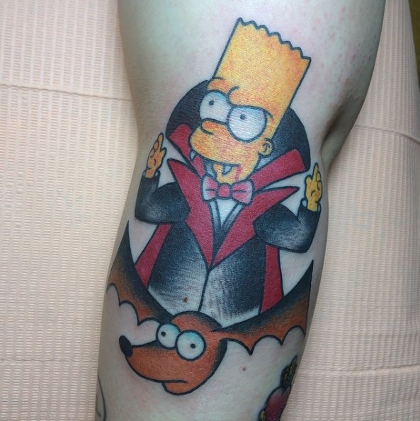 Dracula Bart and Santa’s Little Helper bat tattoo by @alexstrangler