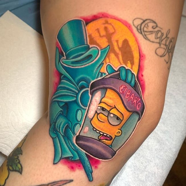 Bart Simpson x The Haunted Mansion tattoo by @jonleightontattoo
