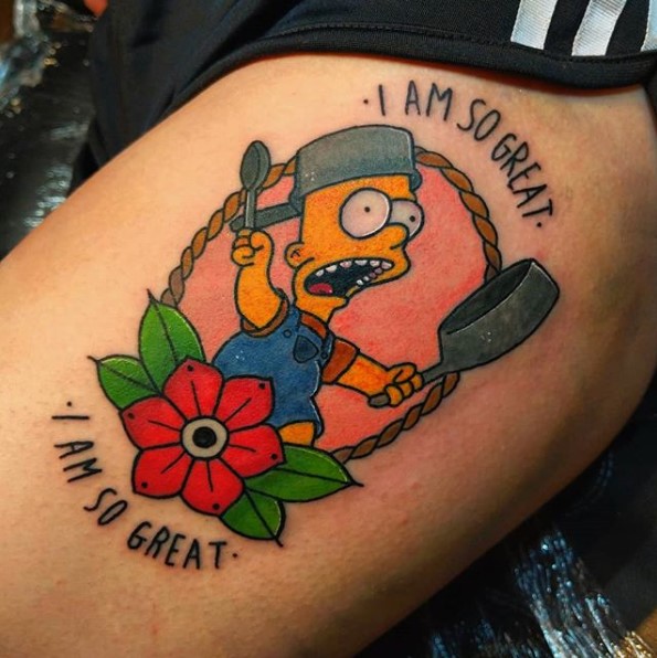 “I am so great.” Bart Simpson tattoo by @stickypop