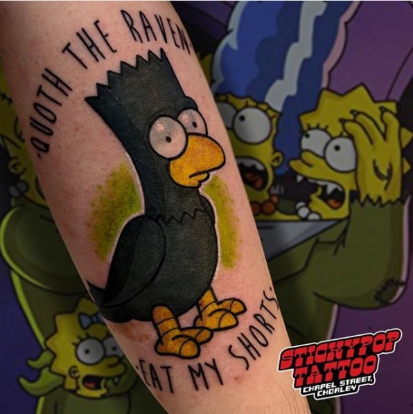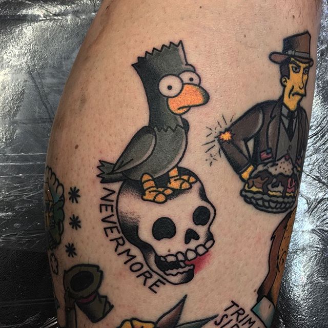 “Quoth the raven – eat my shorts.” Raven Bart tattoo by @stickypop