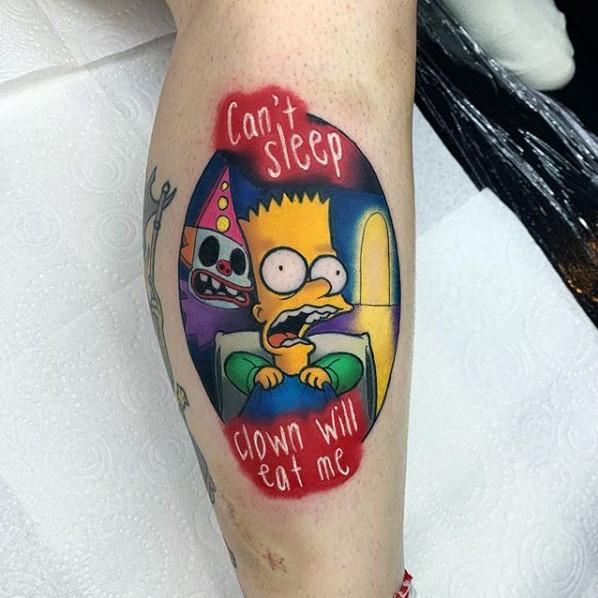“Can’t sleep, clown will eat me.” Young Bart Simpson tattoo by @chrisstockings