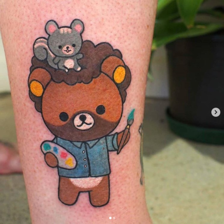 Bob Ross x Rilakkuma tattoo by @nicole_draeger