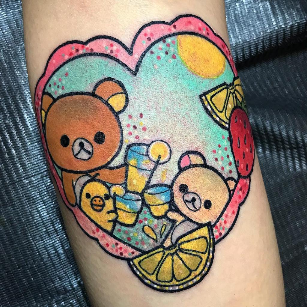 Rilakkuma love heart tattoo by @rachelbaldwintattoo
