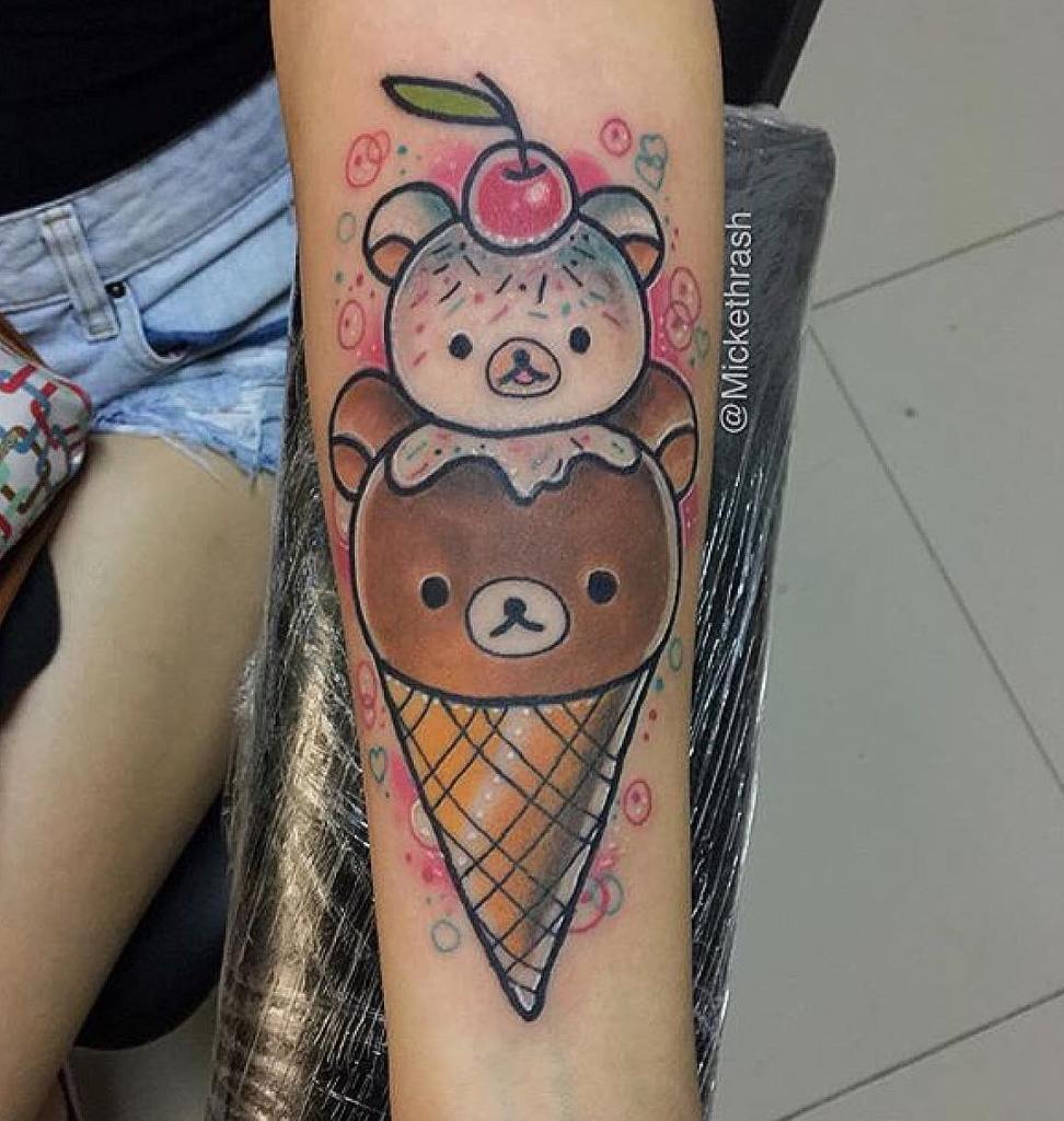 Korilakkuma and Rilakkuma ice cream with a cherry on top tattoo by @mickethrash