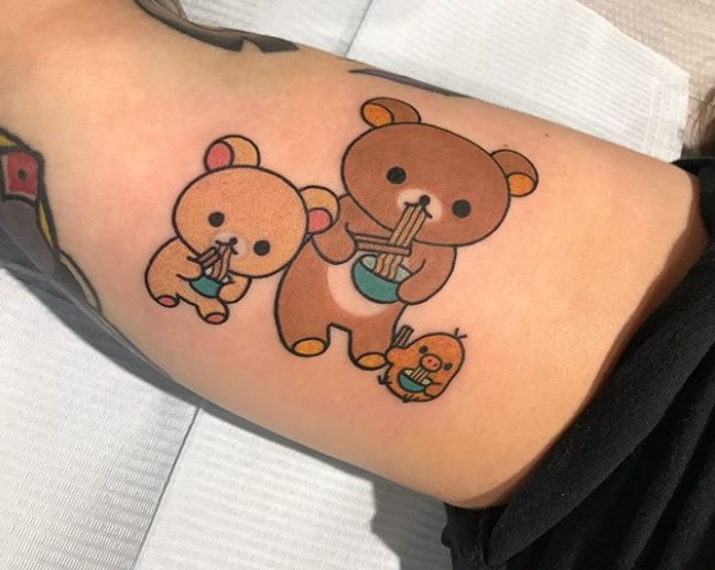 Korilakkuma and Rilakkuma eating noodles tattoo by @victoriakurtztattoos