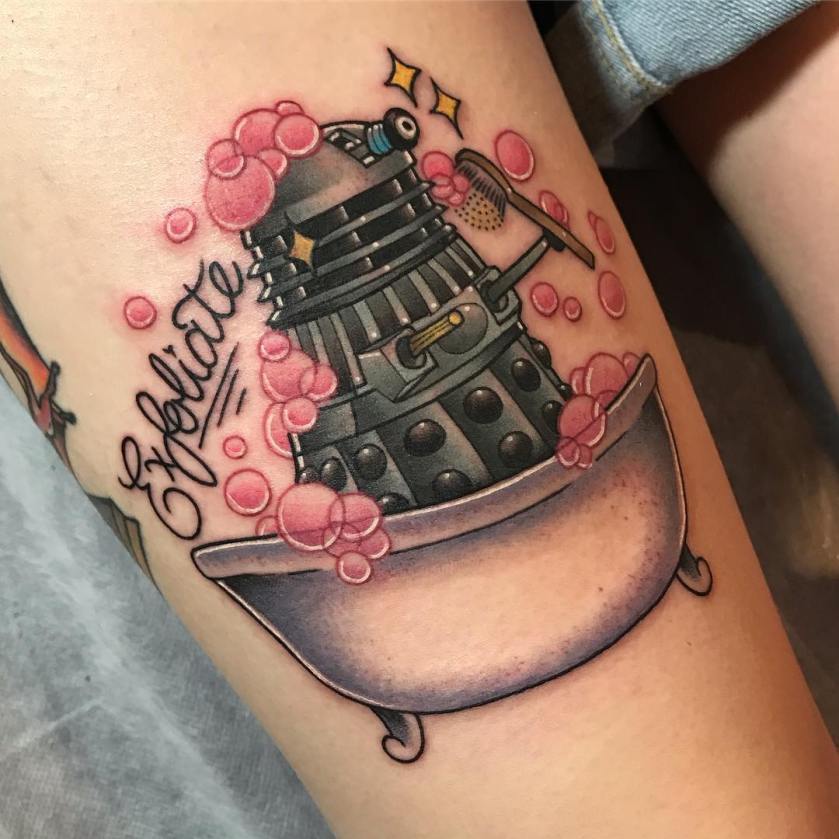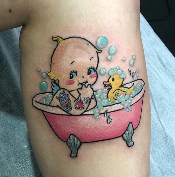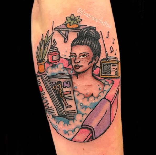 A bubble bath tattoo could be inspired by a favourite film; a romantic moment; a reminder to relax; or even of murderous dolls…