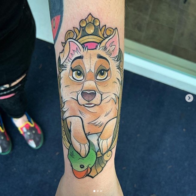 If a Disneyfied pet portrait sounds like something you need to add to your tattoo collection then look no further than Nikki. Nikki’s eye for combining the striking features of her client’s pets with the classic illustrative style of 20th century Disney animation is second to none.