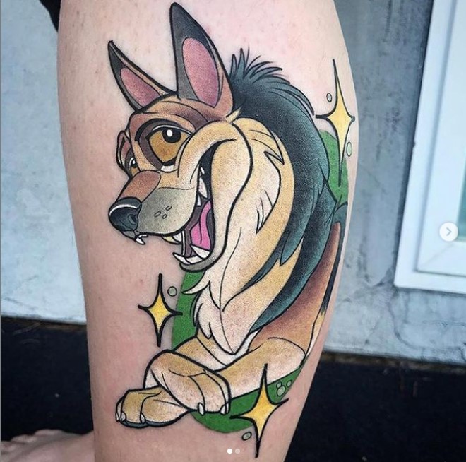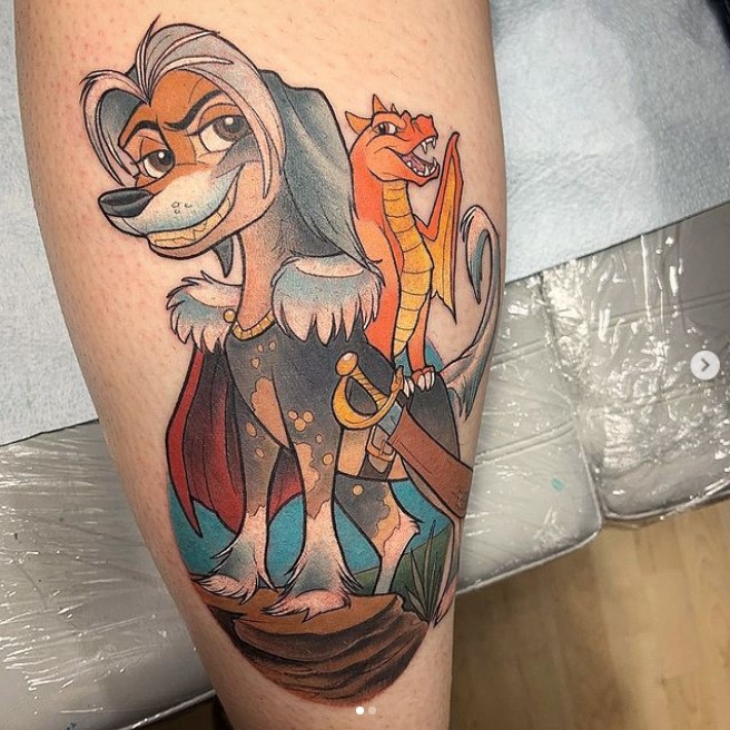 The anthropomorphic animals from the Disney universe hold a dear place in so many of our hearts, but they also share that special place with the pets in our lives. Not only can Nikki Rex transform a photograph of your pet into a Disneyfied portrait, but she can then tattoo it onto your body.