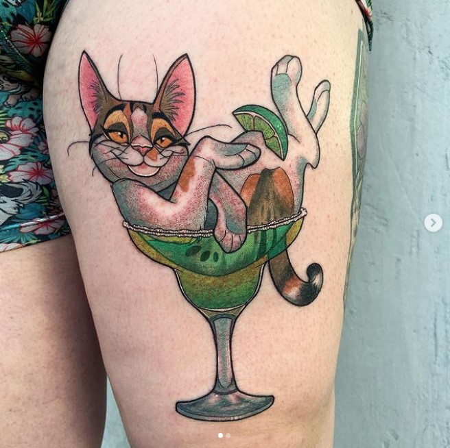 Nikki is co-owner of The Hideaway Tattoo in San Diego, California with Melvin Arizmendi. If you were to scroll through Instagram and see her tattoos, you honestly wouldn’t think twice that these animals weren’t part of some existing animated Disney production – she has certainly nailed the Disney style.