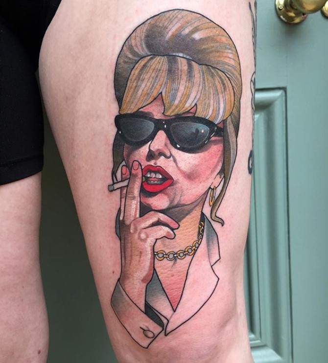 The show’s characters are influenced by the media and fads, but I encourage you to be diligent and do your research before booking your appointment; pick the right artist and you will have yourself an absolutely fabulous Ab Fab tattoo, just like the owners of these pieces.