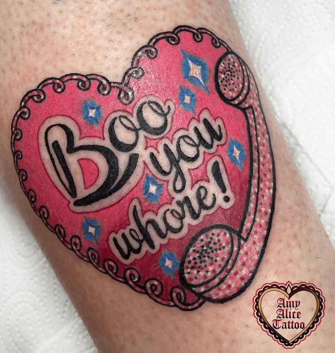“Boo you whore” telephone tattoo by @kawaii_tattoo