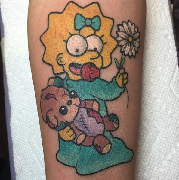 While Maggie doesn’t get involved in as many storylines as other characters, due to her being a baby, there’s sure to be a certain moment from a particular episode which will inspire your own Maggie Simpson tattoo. Keep scrolling and see how other people have chosen to represent Maggie in tattoo form.