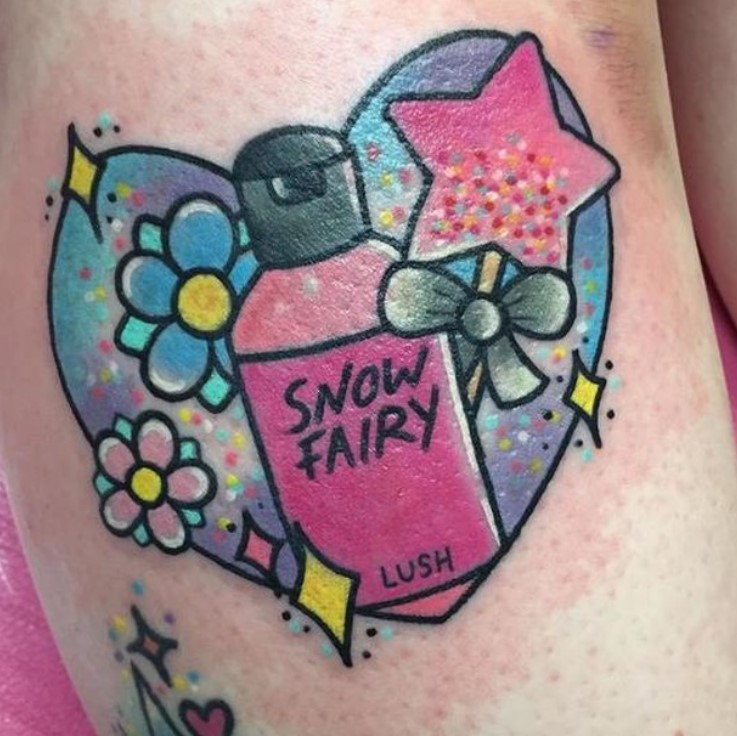 When it comes to getting a Lush tattoo, you have two choices: select your favourite product, either for what purpose it serves or its scent; or go for the looks, selecting something that is a cute shape or could work well as a gap filler.