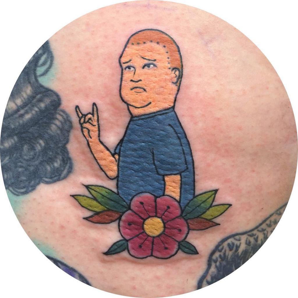 Of all the King of the Hill tattoos I found they’re mainly of the Hill family, but I’d love to see some of Hank’s best friends, or other Arlen townsfolk. Which character do you hope to one day get a tattoo of?