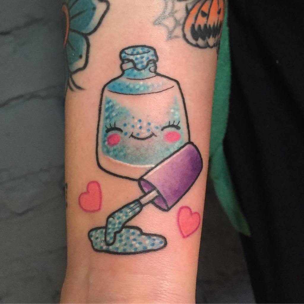 While you may see thousands of hand tattoos flooding social media, recreating nail art on those small fingernails just sadly is not a viable option. The next best thing is a nail polish tattoo, so I’ve provided you with some inspiration below.