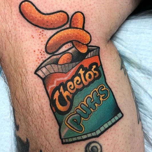 I love how different each of these pieces are and the creative design concepts behind them. Which one would you get tattooed on you: Cheetos or Takis?