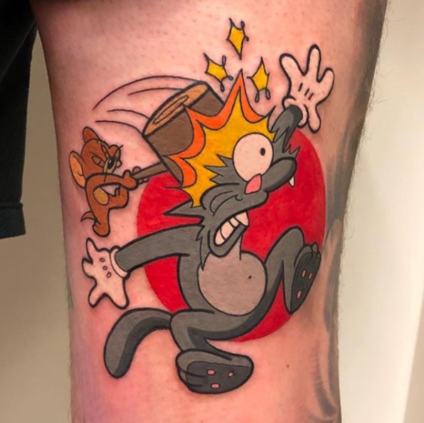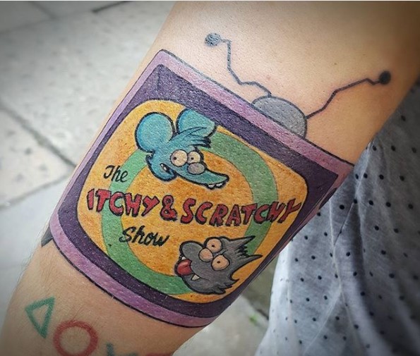 No Simpsons tattoo collection is complete without an Itchy and Scratchy piece.