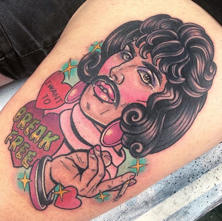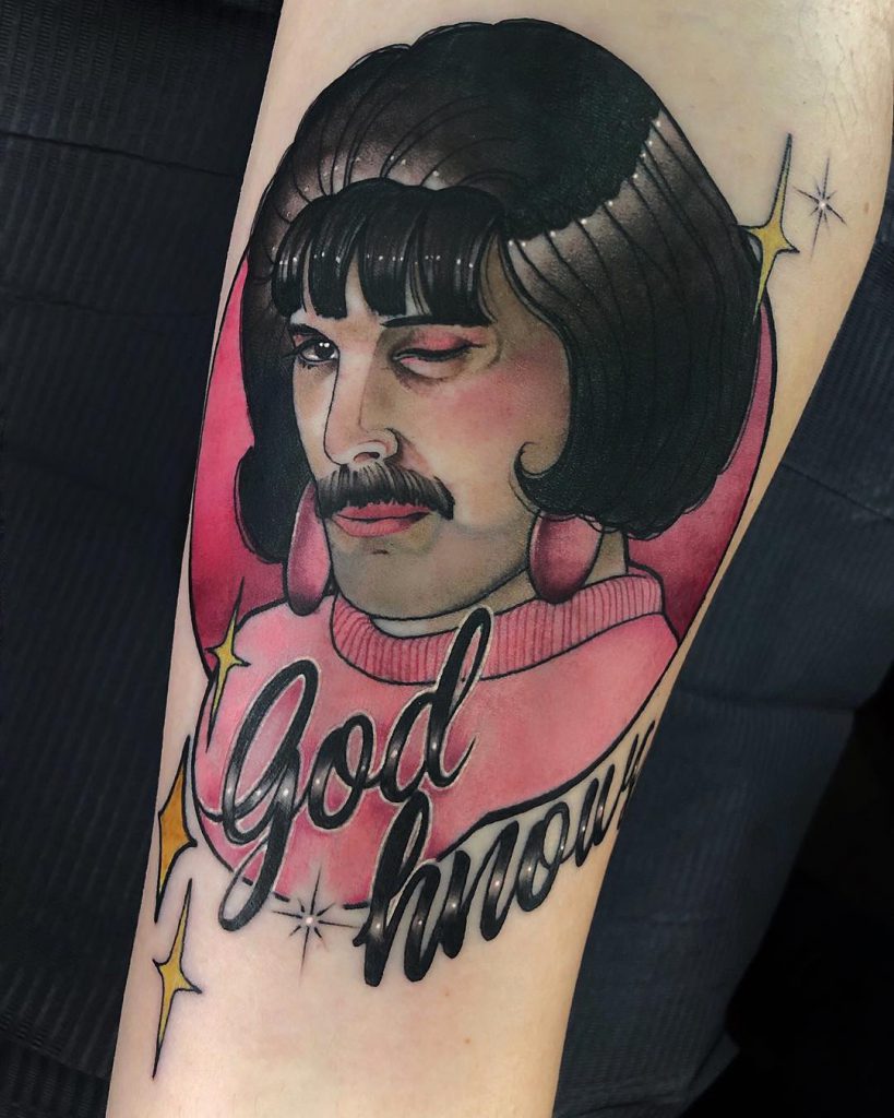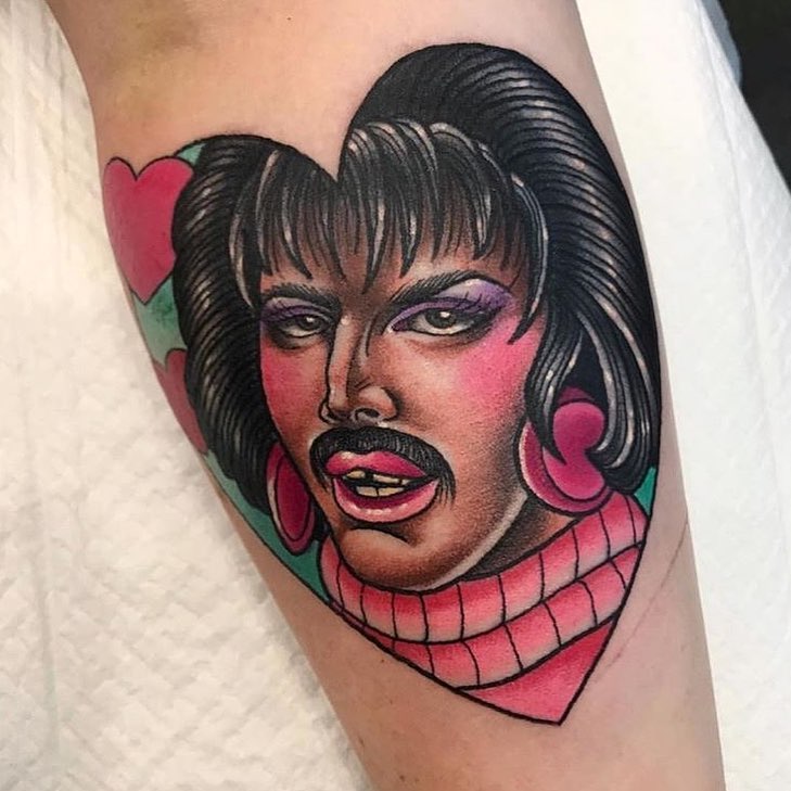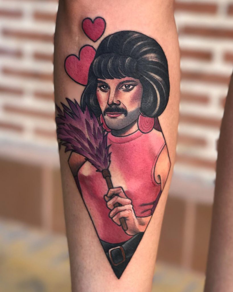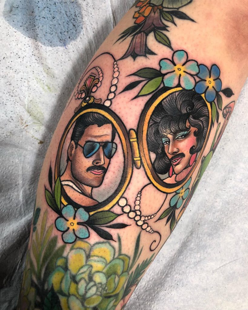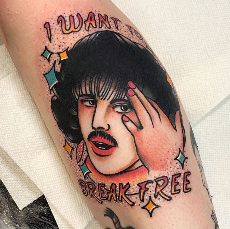 These tattoos are proof that the same tattoo concept does not equal the same tattoo. Find your favourite moment, screenshot it and then find an artist whose style you love. Yours won’t be the first nor the last Freddie Mercury tattoo, but it can and should be unique to you.