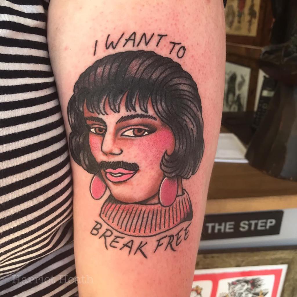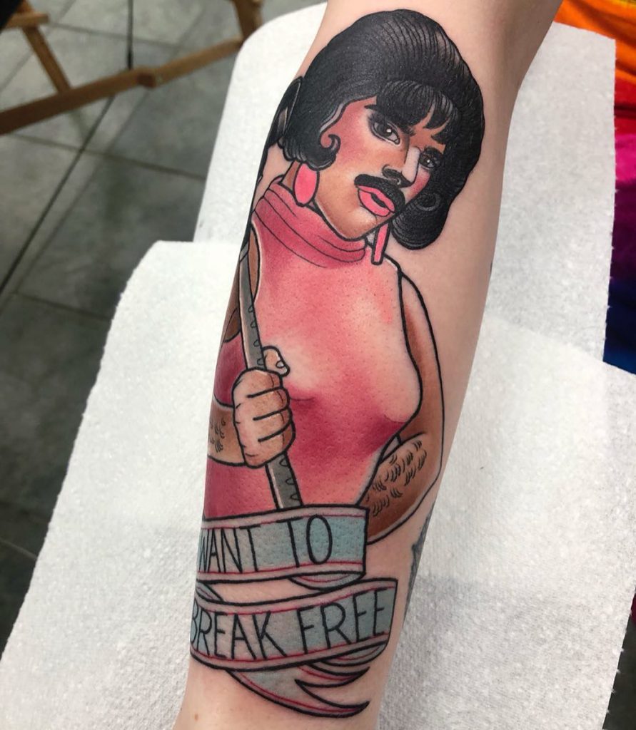 It’s come to the point that I’ve had to create a separate post just for these 48 Freddie Mercury tattoos inspired by his iconic look from Queen’s “I Want to Break Free” music video.