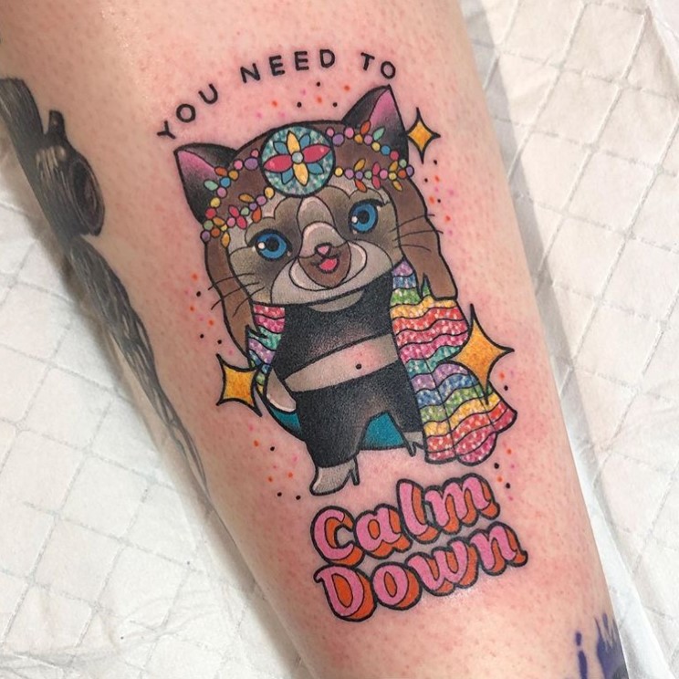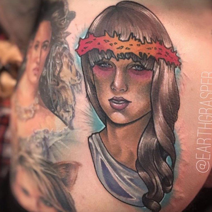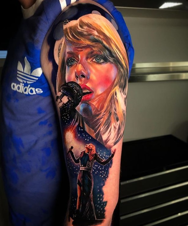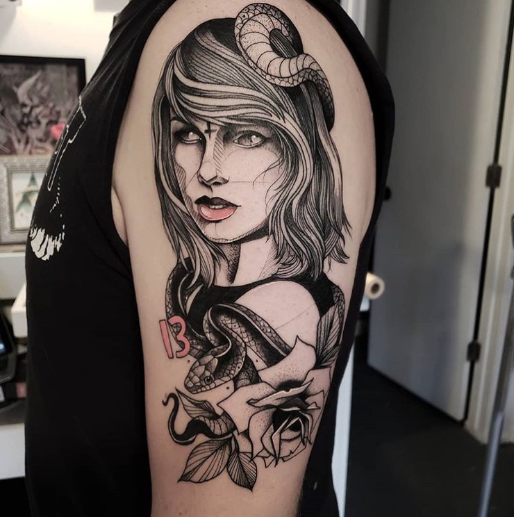 If you’ve been considering a Taylor Swift tattoo, I suggest thinking about specific songs and lyrics, a photograph, a still from a music video or any imagery you associate with her. Decide on a style and find the perfect artist who specialises in that style and can bring your vision to life. Until then, enjoy these Taylor Swift tattoos on your fellow Swifties.