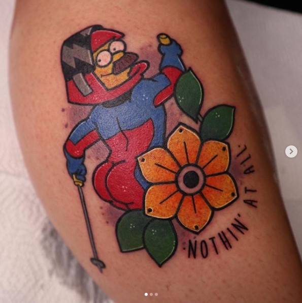 If you’re like Homer Simpson and still (after all these years) can’t get the image of Ned Flanders in his skin-tight ski suit out of your mind then maybe a tattoo is in order.