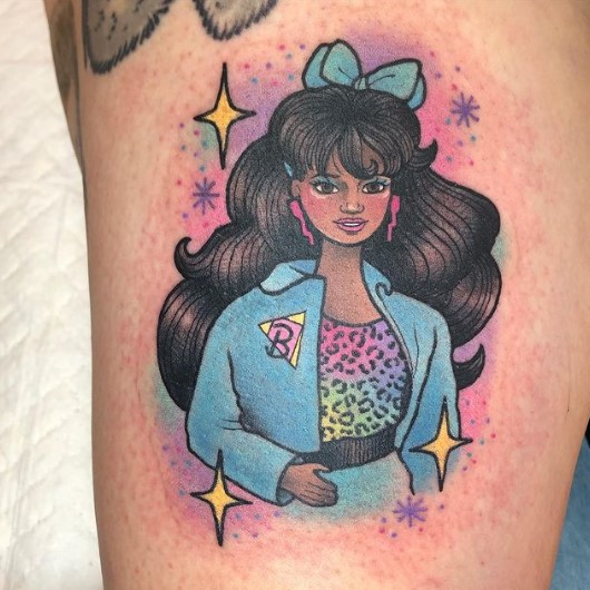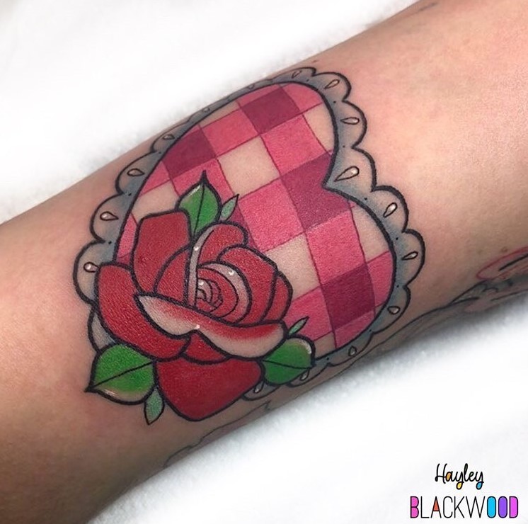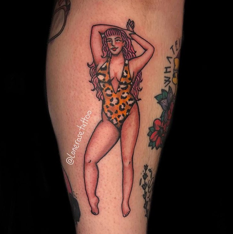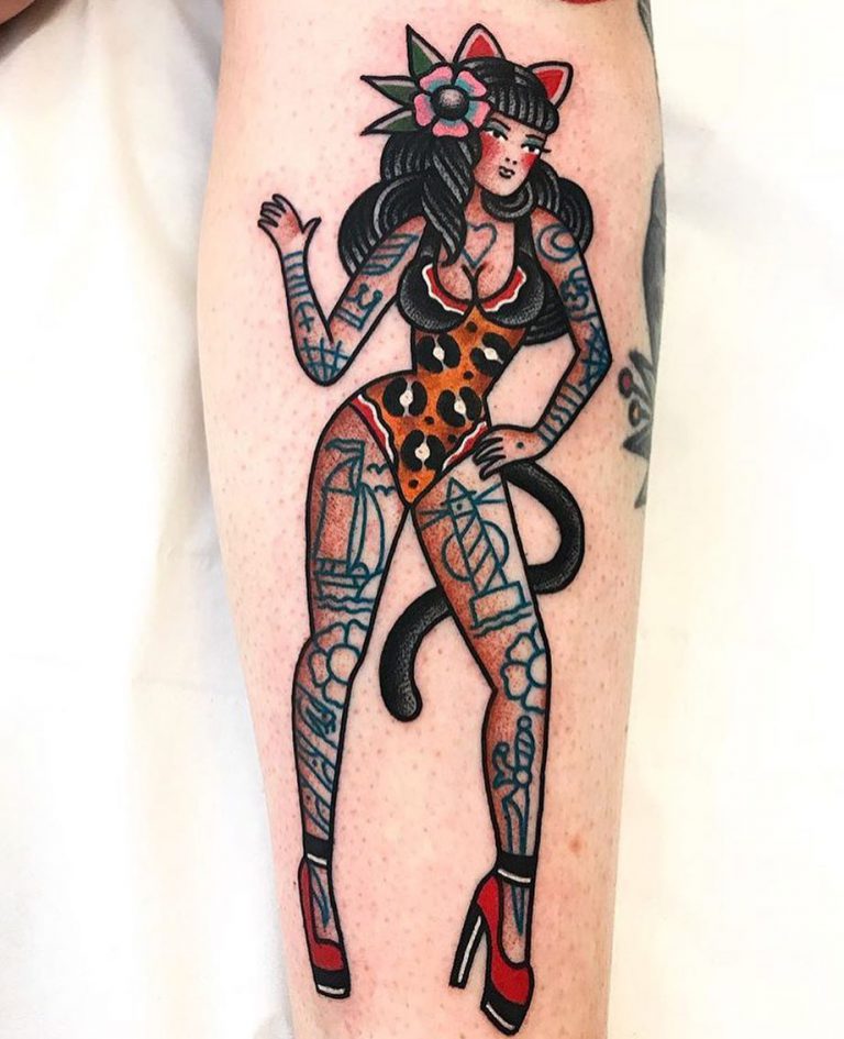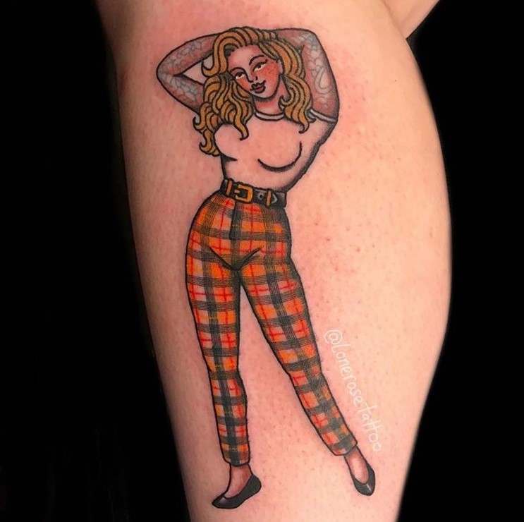 The tattoo could be craft or sewing themed; a clothed person or pinup; the inside of a shape (love heart or logo); or something more abstract. The concept may be inspired by a film, sport, a passion for fashion, or your heritage (Scottish tartan) and a national dress.