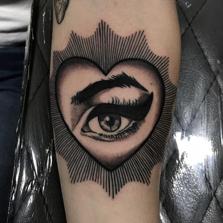 Blackwork Amy Winehouse eye and love heart tattoo by @yesitattoos