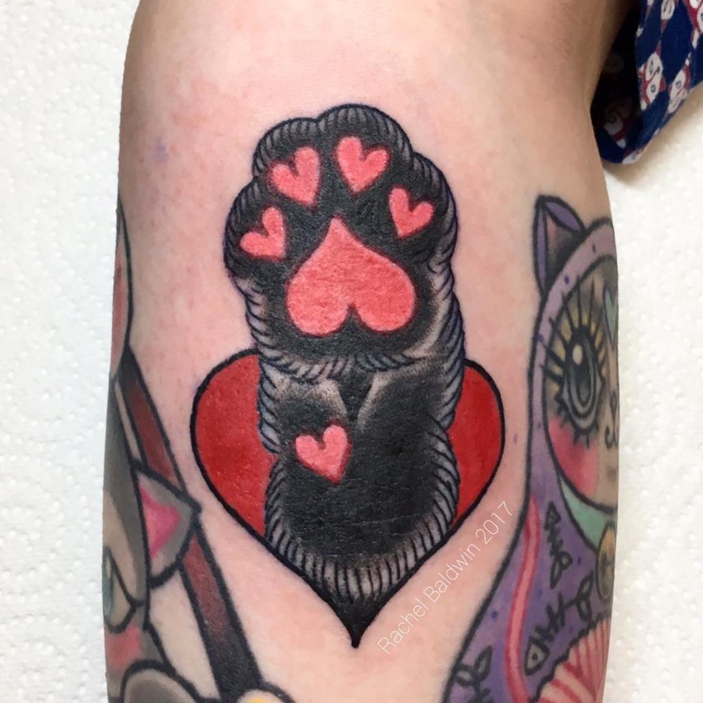 Love heart shaped cat toe beans tattoo by @rachelbaldwintattoo