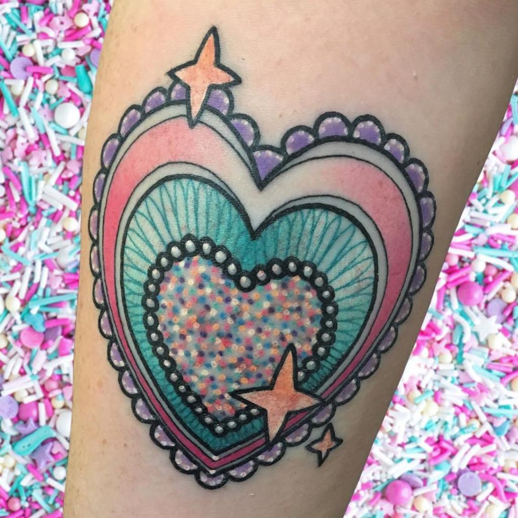 You melt my heart. Vintage Valentine’s ice cream and love hearts tattoo by @tattoosbyjaclyn