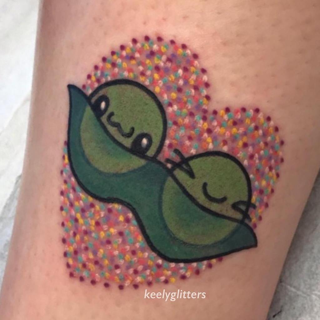 Kawaii peas in a pod and sparkly love heart tattoo by @keelyglitters