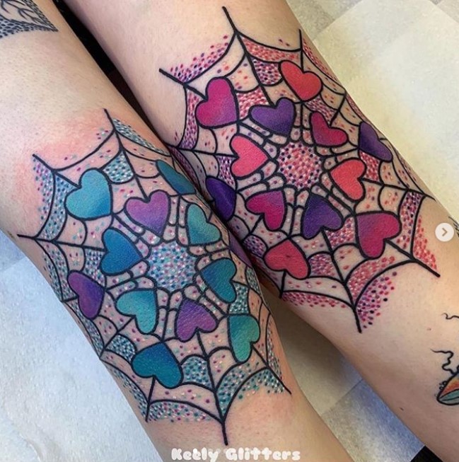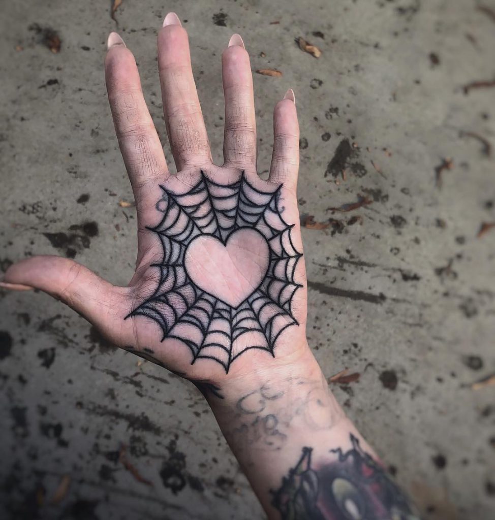 Love heart and spider web palm tattoo by @walkerx on fellow tattooer @jodydawber