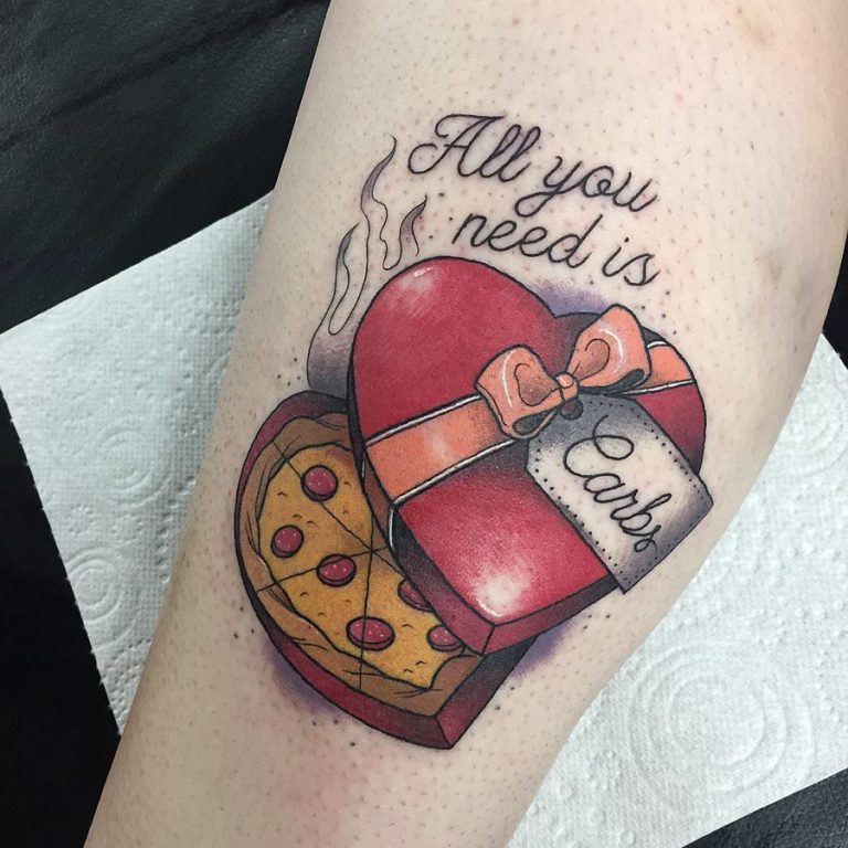 All you need is carbs. Love heart shaped pizza tattoo by @lucybluetattoo