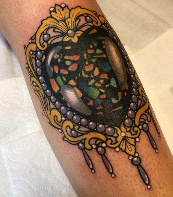 Neo trad decorative love heart opal tattoo by @paulacastletattoos
