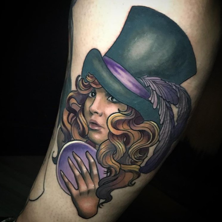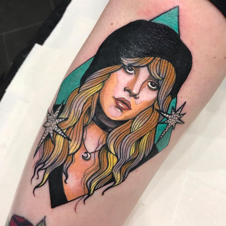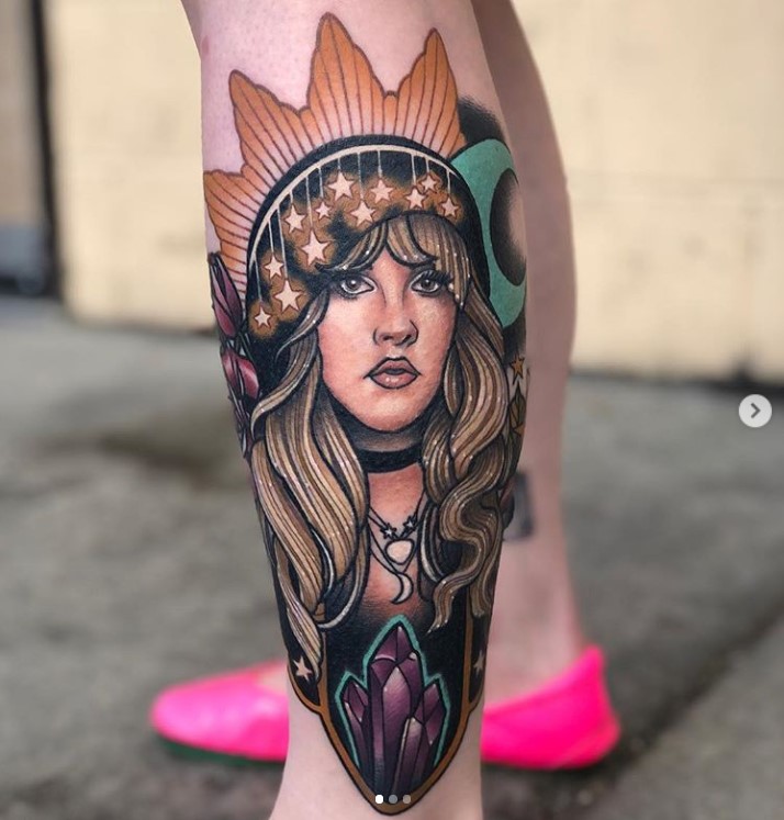 Neo trad Stevie Nicks portrait tattoo by @artsyshartsy
