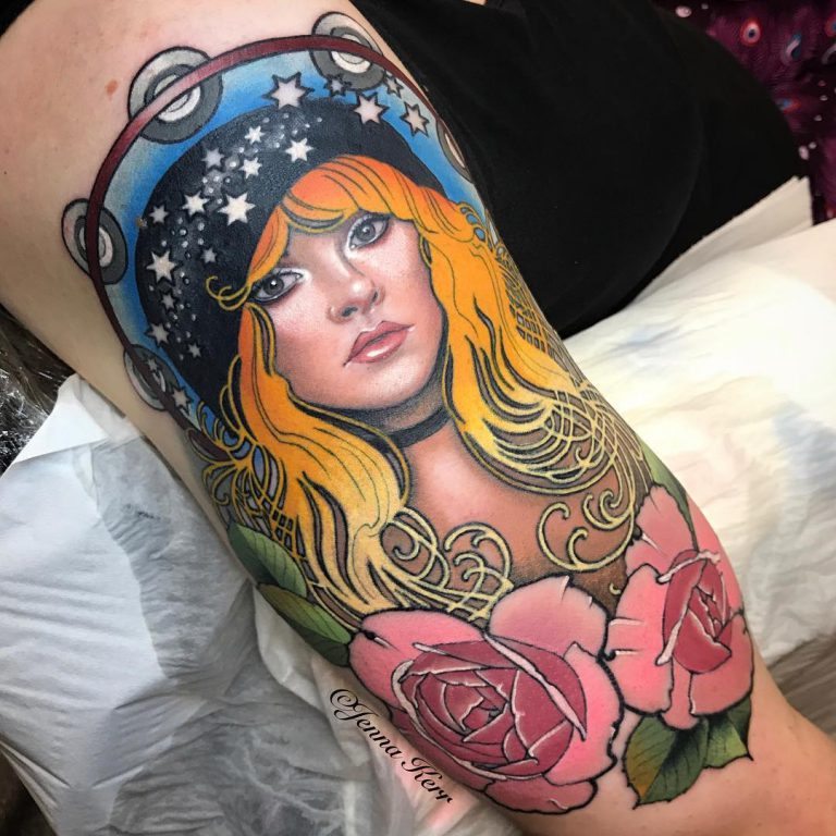 Mucha-inspired Stevie Nicks tattoo by @jennakerrtattoo