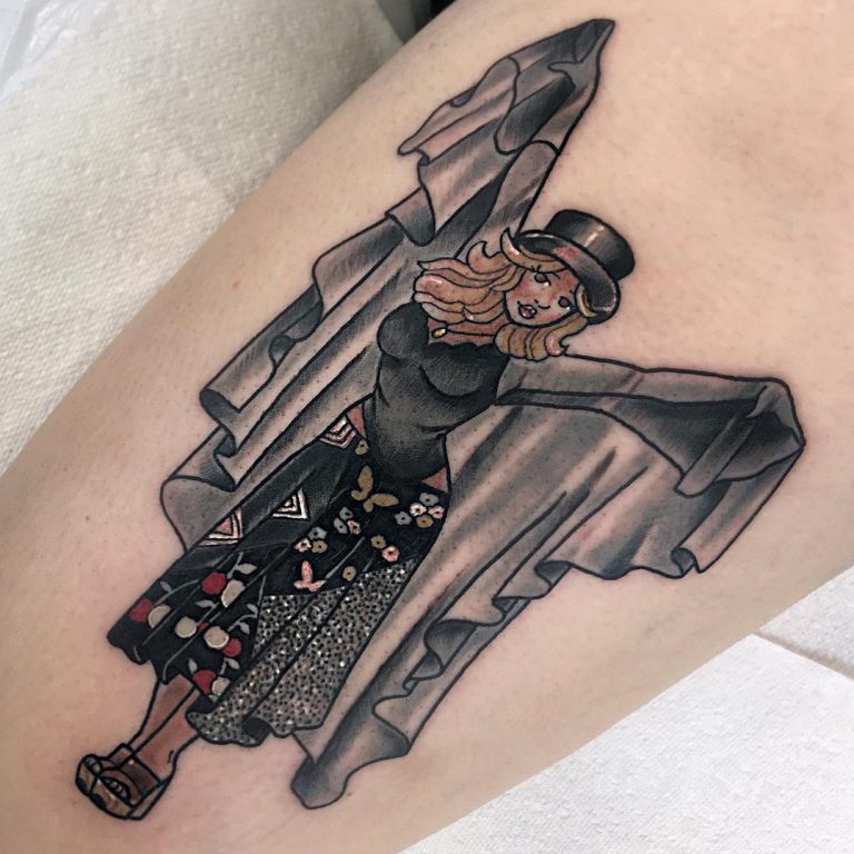 Neo trad top hat clad Stevie Nicks tattoo by @sophielewistattoos