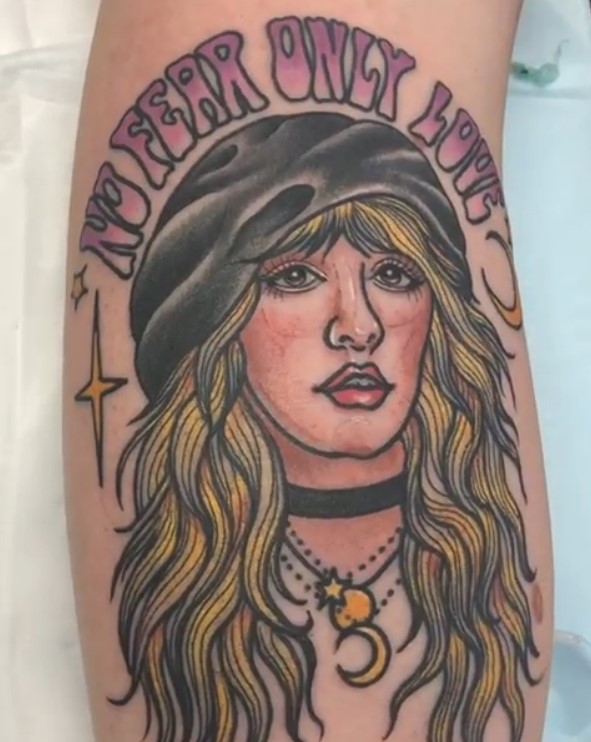 Since so many of the beautiful photos you’ll find of Stevie are in black and white, you’ll discover quite a few tattoos following the theme. Black and grey realism tattoos have that classic, timeless look which is so fitting for a musician of Stevie’s calibre – her music will be with us forever.
