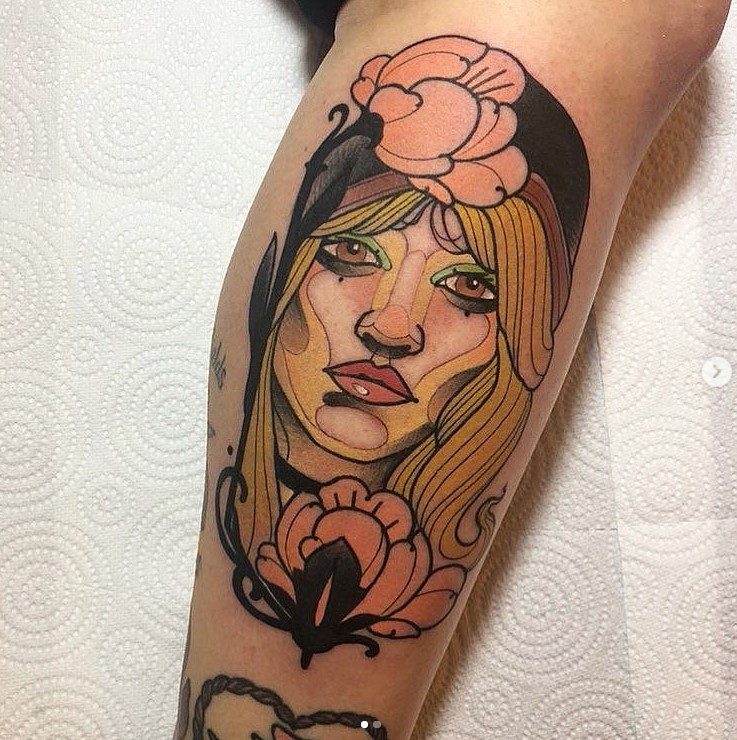 Stylised neo trad Stevie Nicks tattoo by @sophielewistattoos