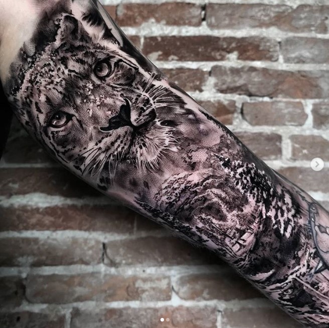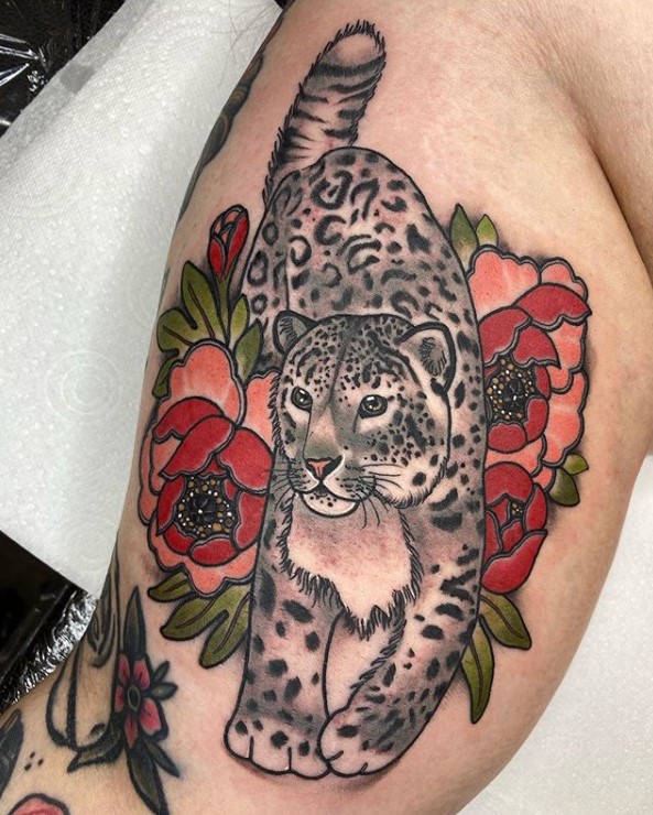 There is no collective name for a group of snow leopards as they’re known to be solitary animals, with the exception being a mother and her newborn cubs. All of the tattoos featured here are of only a single snow leopard, but you can choose to do something different, especially if your love of this animal is so great. What about an entire sleeve of snow leopards, or a back piece with a number of them in various poses or different stages of their life?