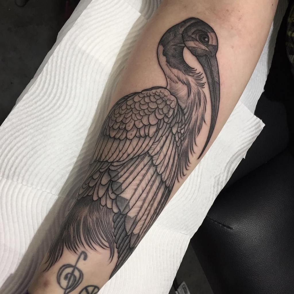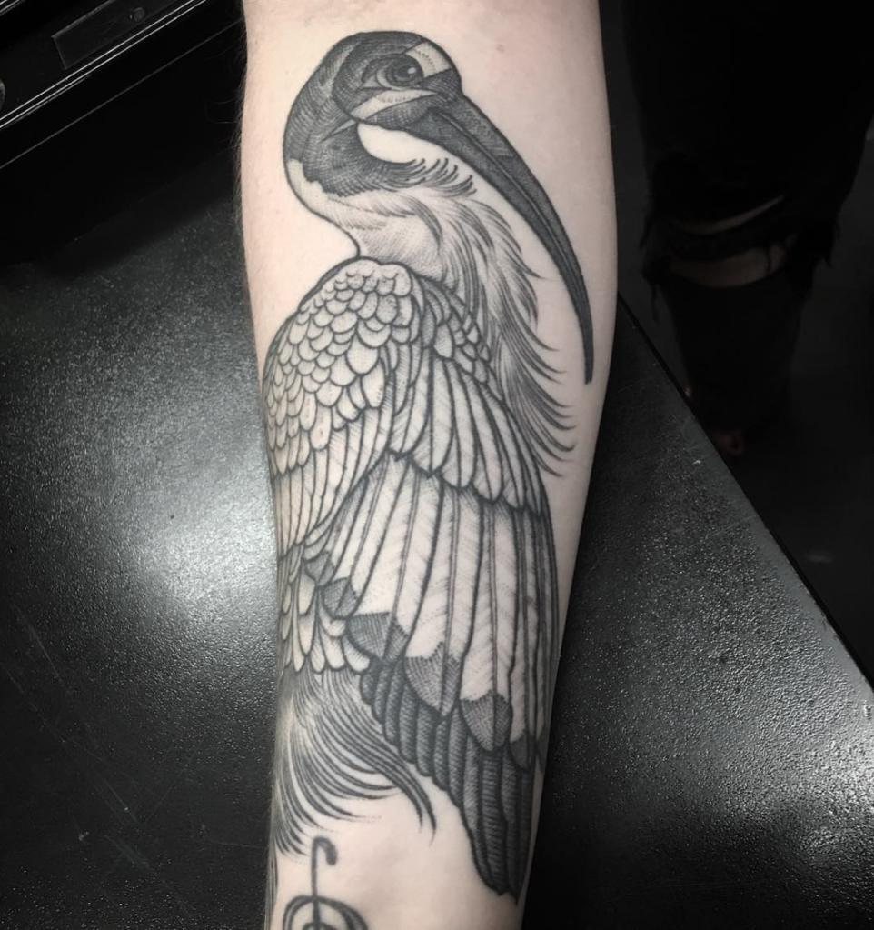 Aside from being put onto your body, where will your ibis be placed in your tattoo? Will you put in back in its proper natural habit, or a cityscape where you would often encounter them? These nine pieces will surely inspire your choice of style and decorative elements for your own bin chicken/ibis tattoos.